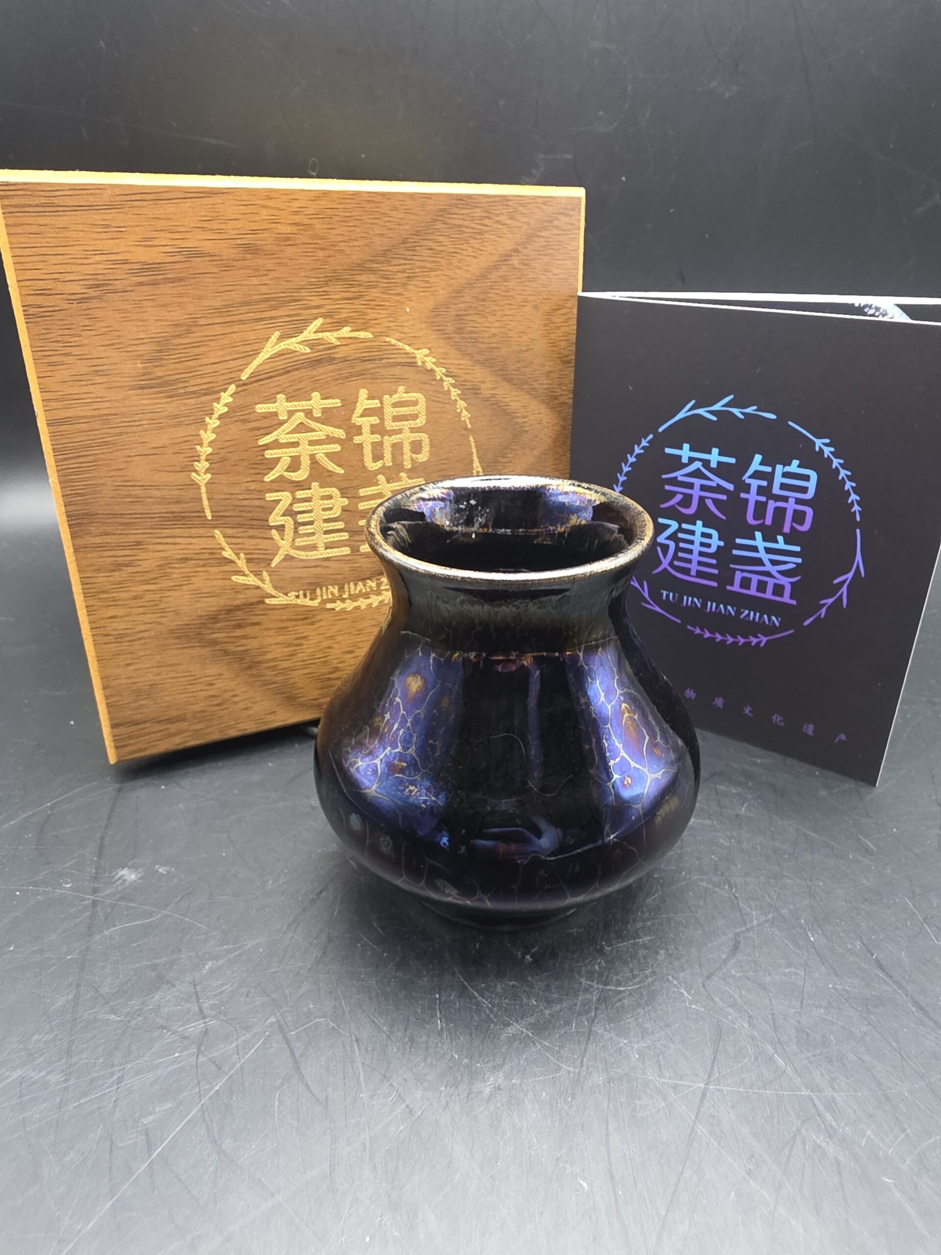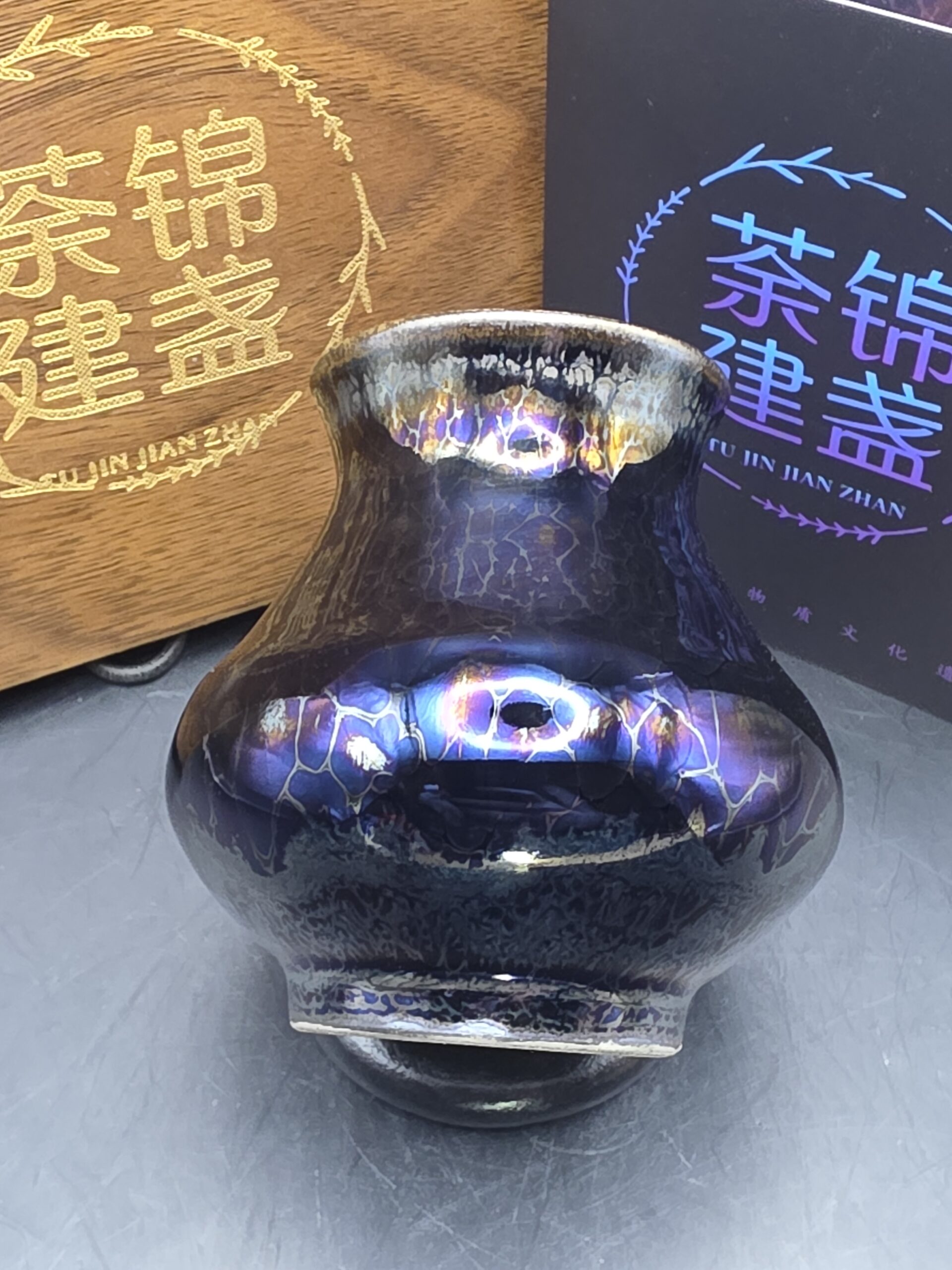 Li Jinhua small vaseJunaperJuly 5, 2025Jianzhan Tags# Blue# Electric Kiln Fired# Jianzhan# Li Jinhua# Purple# Vase