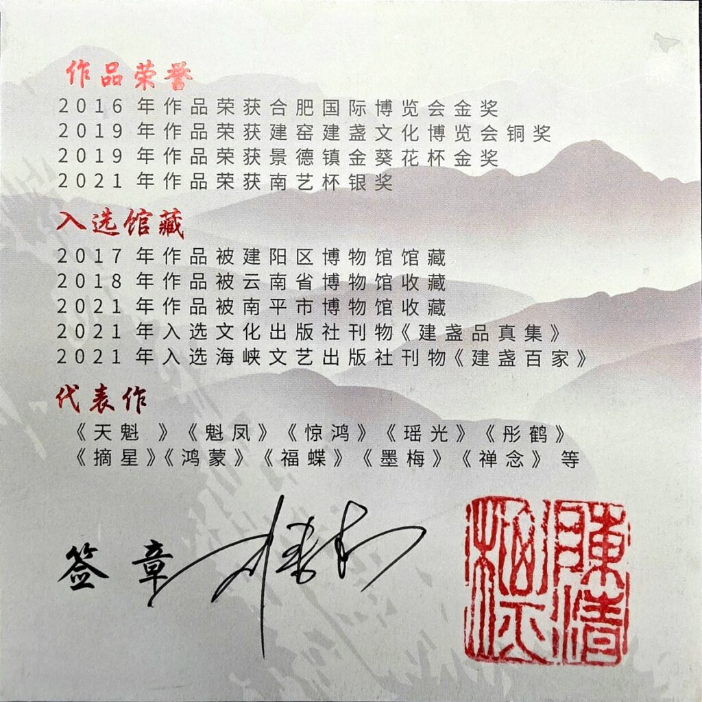 In 2022, his company was recognized as a National Jian Zhan Landmark Enterprise, and he was selected as one of Nanping’s celebrated folk arts and crafts artists.