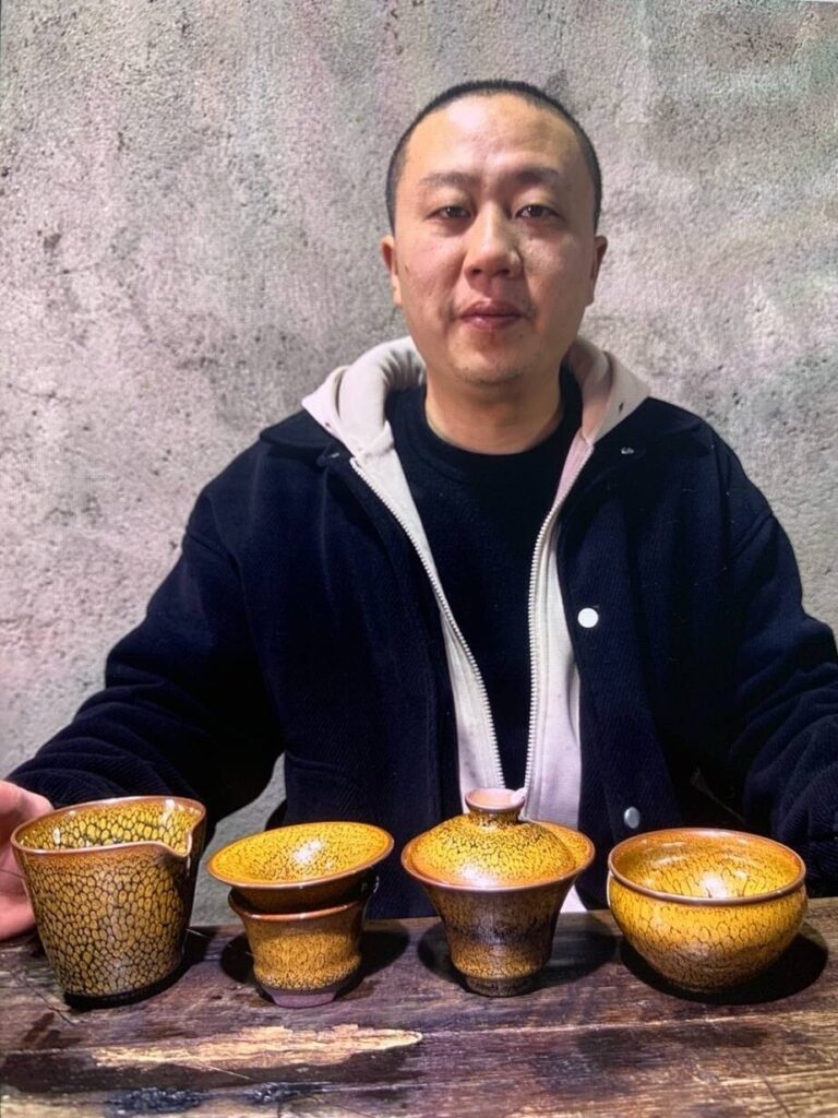 His signature glaze style frequently features lustrous, layered effects—especially the “Partridge Feather” (鹧鸪斑) appearance. The glazing technique often involves full glaze coverage (全包釉) as marketed in some listings. 2