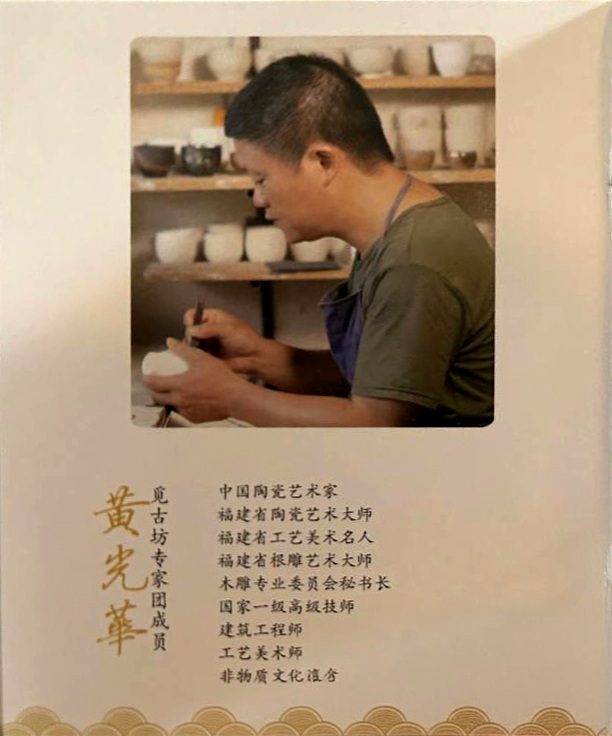 Huang Guanghua is a Chinese ceramic artist and senior arts and crafts master based in Fujian Province. He has been recognized as both a Provincial Arts and Crafts Master and an Intangible Cultural Heritage bearer. His deep knowledge spans multiple disciplines including ceramic design, carving, and traditional craftsmanship.