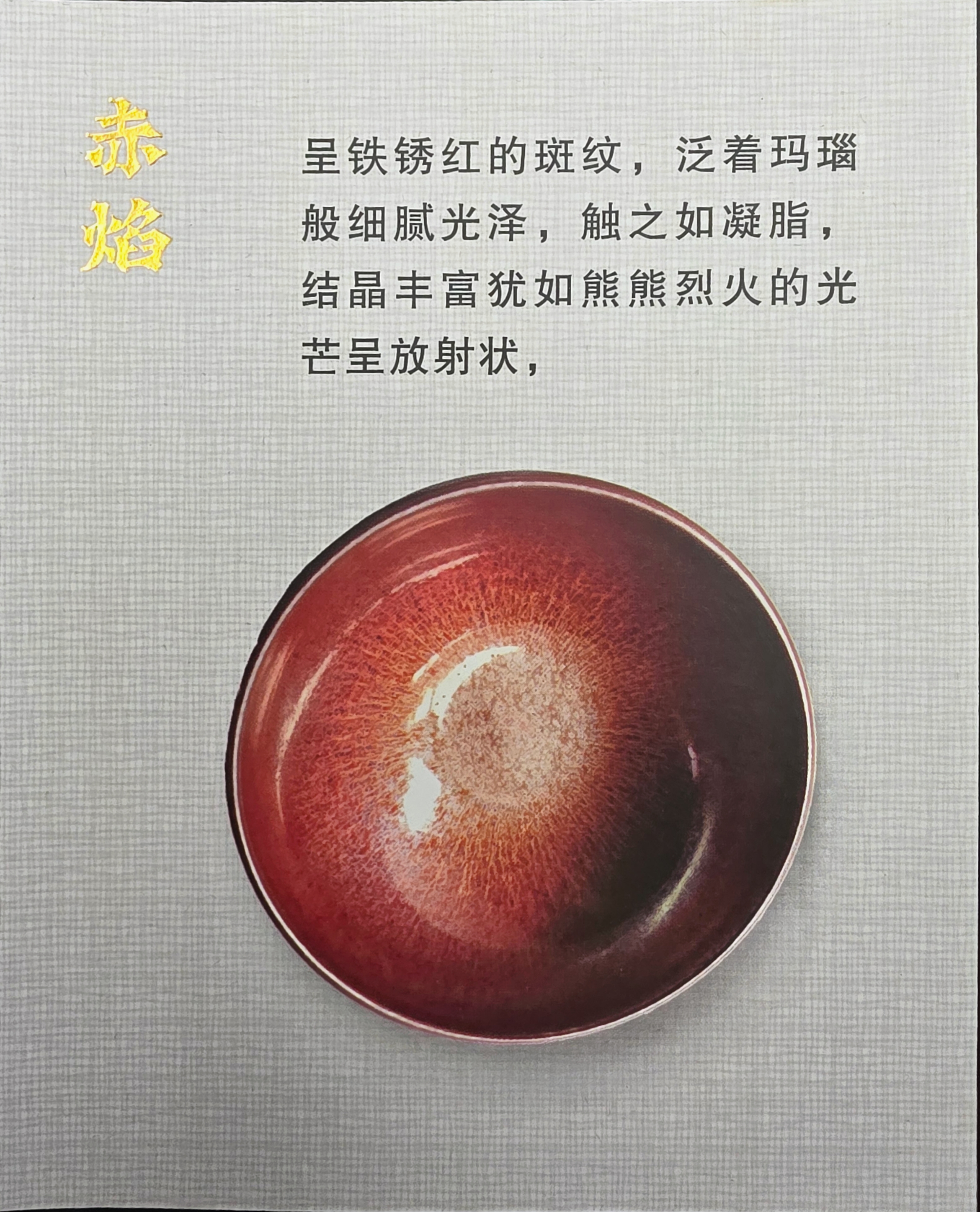 • 赤焰 (Chi Yan / Crimson Flame): A fiery red glaze with dense crackles and glowing depth, resembling molten lava.