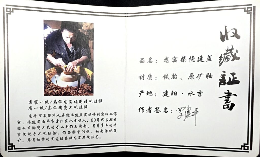 罗真 is a nationally certified senior Longyao (Dragon Kiln) firing technique artist, as well as a provincial-level senior ceramic arts and crafts master. He is based in Shuiji Town, Jianyang, Fujian Province, a historic center for traditional Jian ware production.