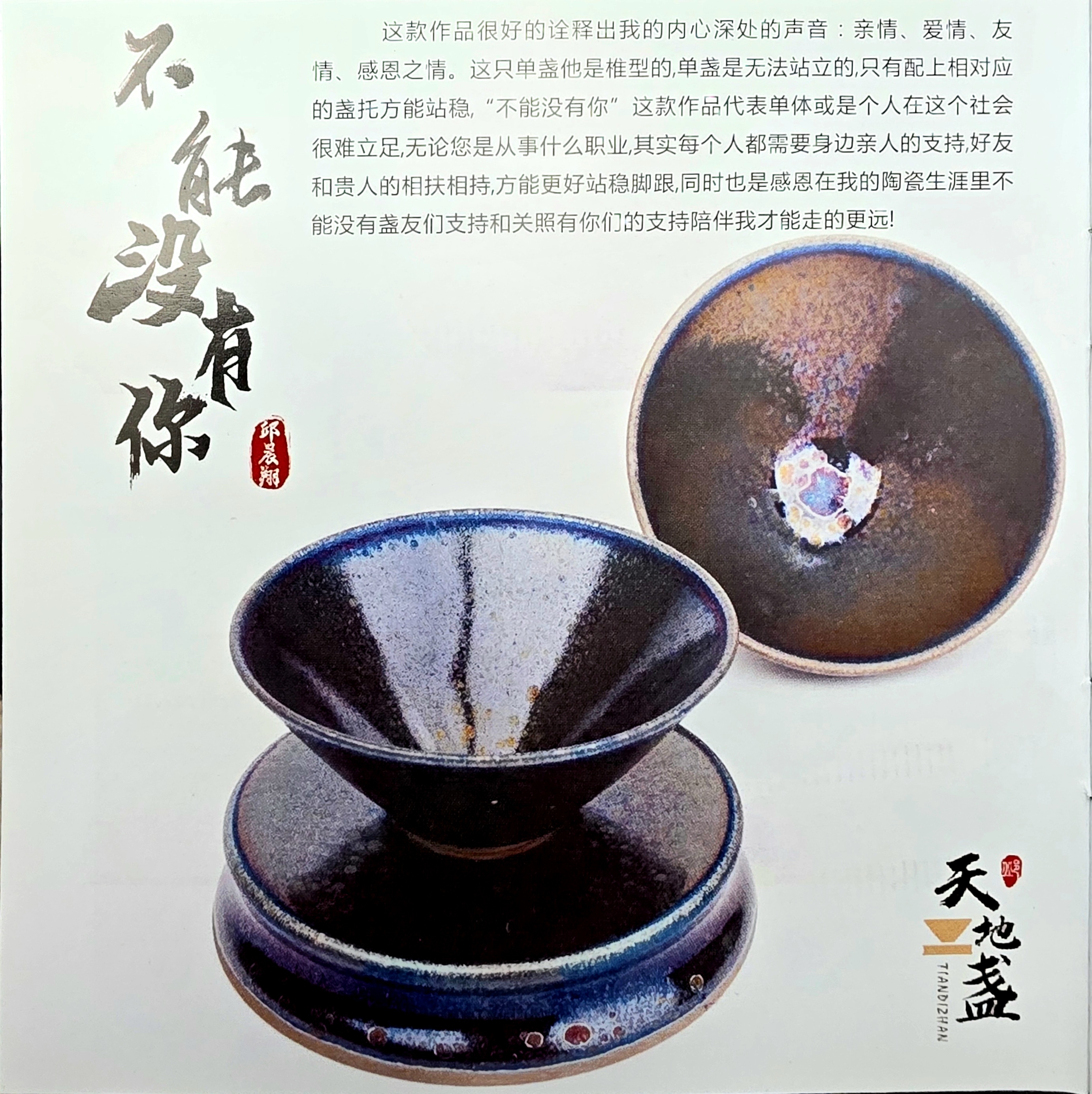 Qiu Chenyang believes that the beauty of Jian Zhan lies in its unpredictability — no two pieces are alike. Each work captures a moment of transformation within the kiln, revealing the harmony between earth, fire, and the artist’s intent. His motto could be summed up as: “Art is life, ceramics bring joy.”