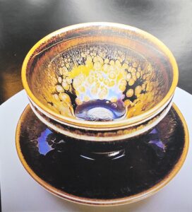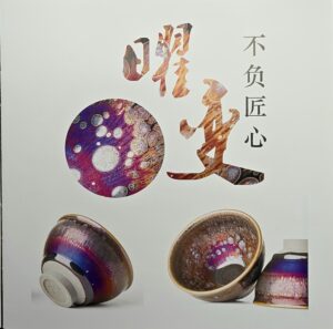 Qiu’s pieces are known for their exquisite glaze patterns — ranging from traditional oil-spot (油滴) and hare’s fur (兔毫) to complex Yohen (曜变) effects. His works include tea bowls, vases, and unique exhibition pieces, each demonstrating his careful control of the kiln atmosphere and materials.