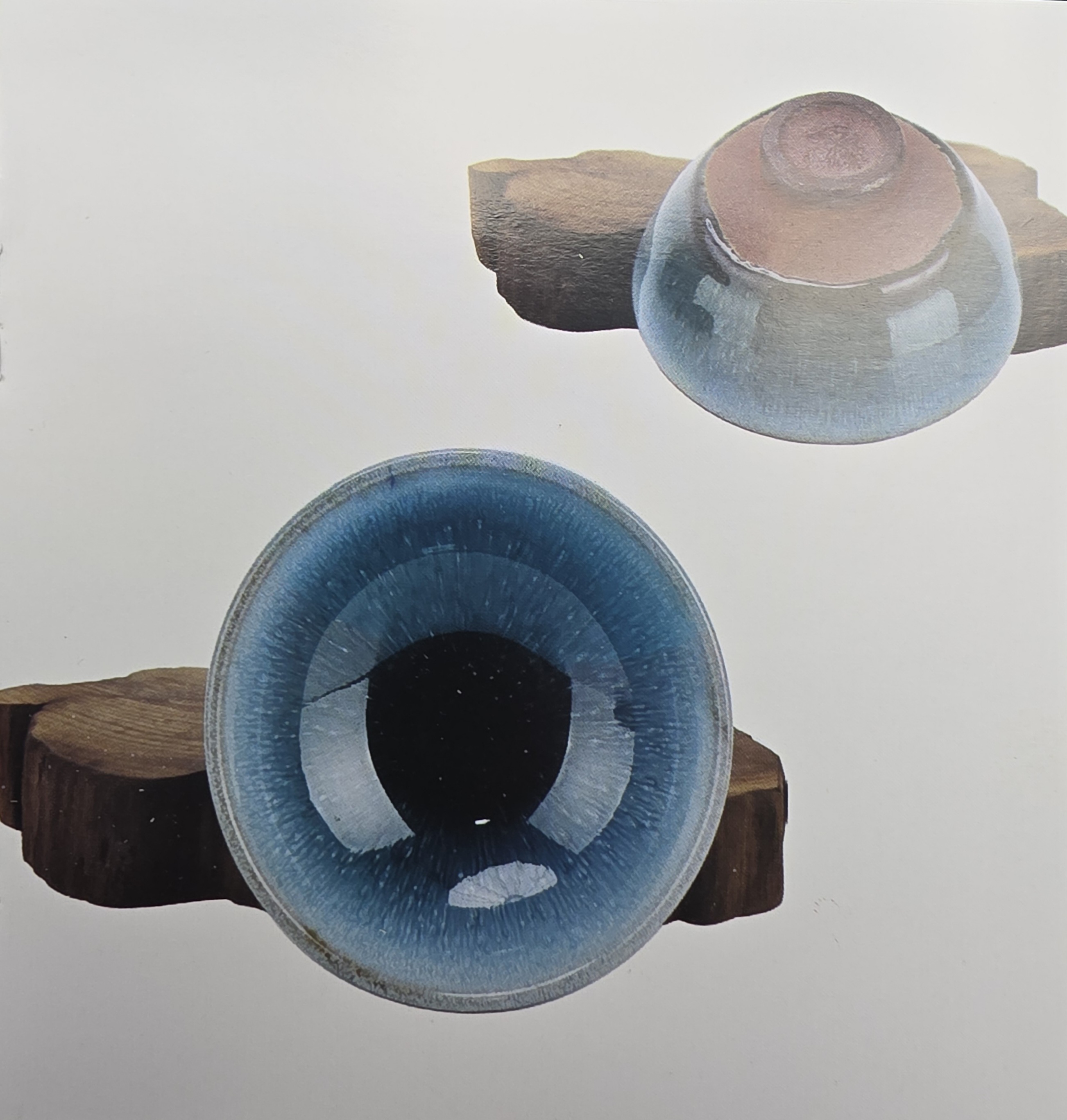 Excerpt: Ye Youping is a contemporary Jianzhan artist whose work draws on Song-dynasty tea culture. Her glaze language ranges from mist-washed blues to dark grounds with silver crystalline blooms… often paired with auspicious ruyi cloud motifs.