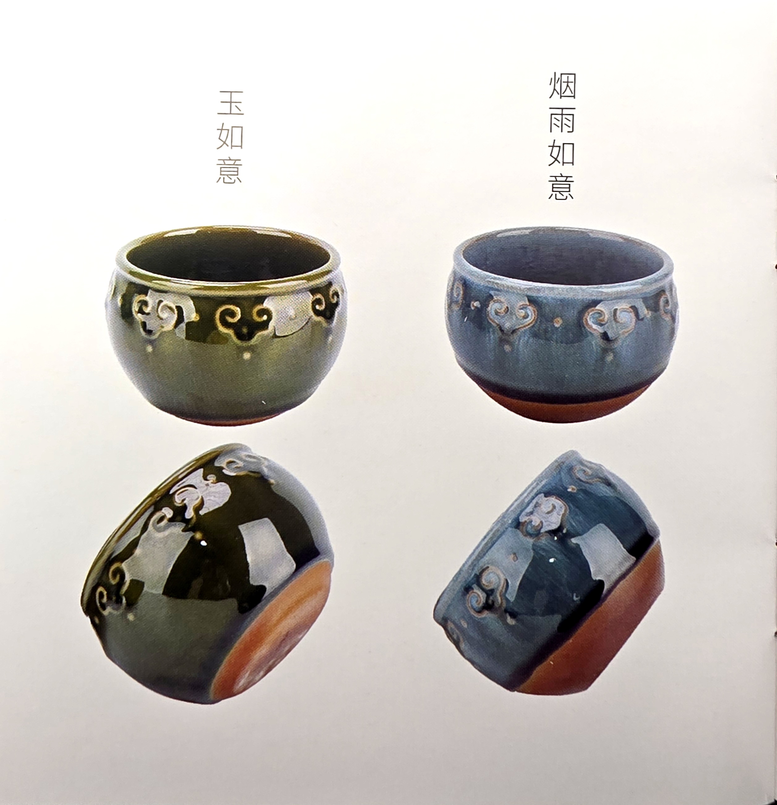 - 烟雨如意 (Yānyǔ rúyì) — misty-blue “rain” glaze.