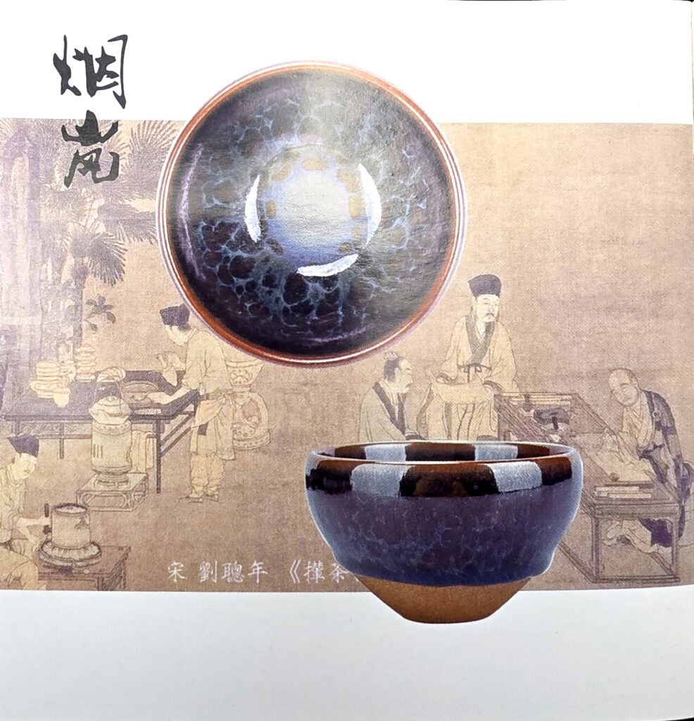 Imagery in the booklet references Song-dynasty tea scenes such as 点茶图 and scholar gatherings, underscoring Jian ware’s historic role in whisked-tea contests and literati culture.