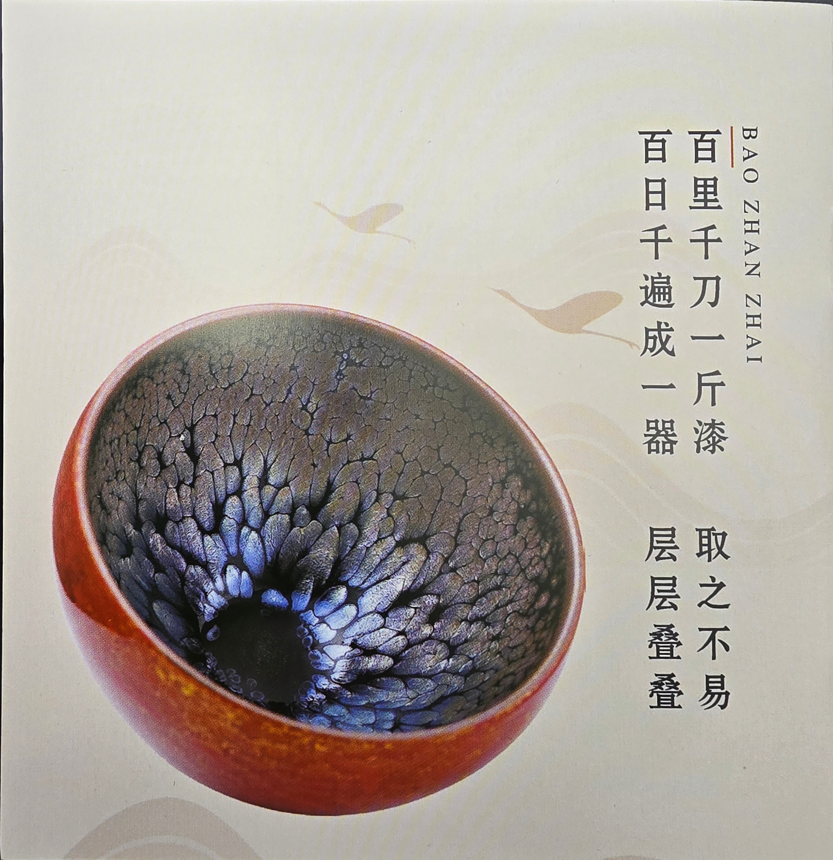 Working under the broader aesthetic influences of Bao Zhan Zhai (宝盏斋), Yu Zhanghong’s cups often feature striking oil-spot (曜变) glazes with metallic luster, iridescence, and intricate crystalline patterns. His pieces are known for their rich depth, dramatic textures, and refined forms that evoke the legacy of Jian ware while bringing a modern sensibility to the craft.