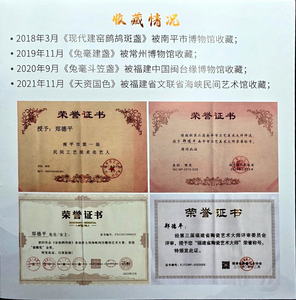 - 2018年3月,《现代建窑鹧鸪斑盏》被南平市博物馆收藏