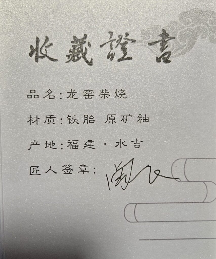 This piece is officially certified as part of the Longmi Wood-fired (龙密柴烧) series from Daidai Long Kiln. The materials and techniques are rooted in China’s recognized National Intangible Cultural Heritage.