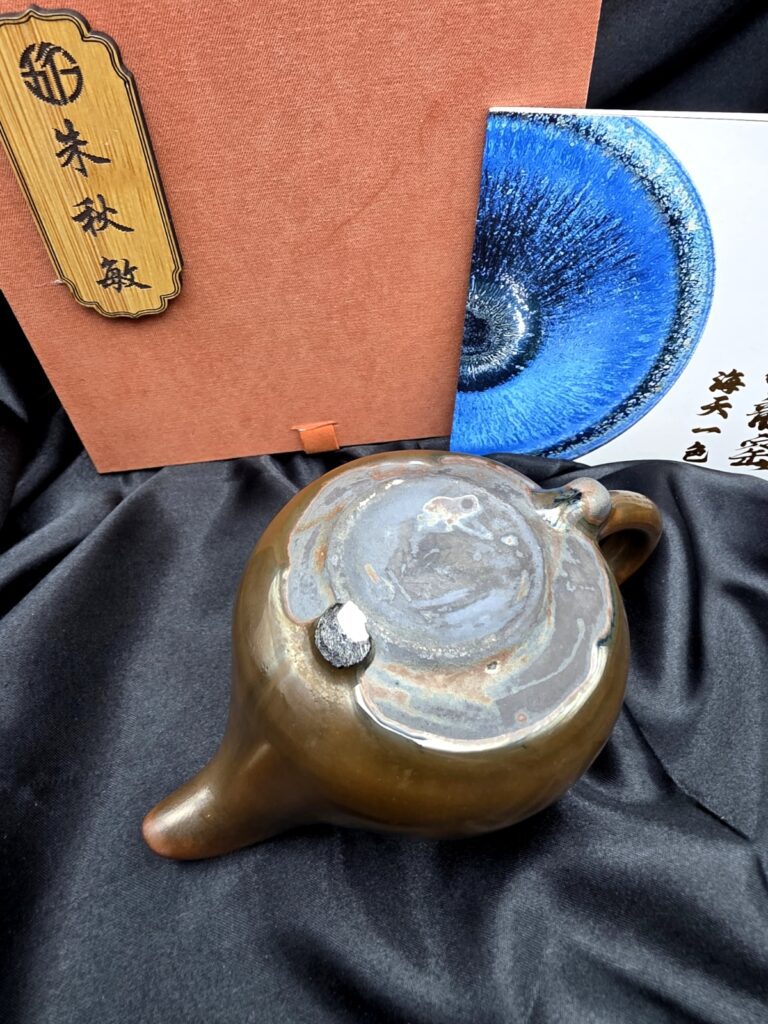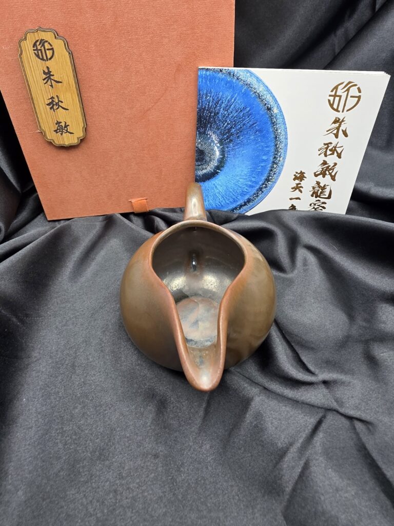 Zhu Qiumin 牛角壶 Ox Horn Pot giftJunaperAugust 26, 2025Jianzhan Tags# Gold# Jianzhan woodfire# Ox Horn Pot# wood fire# Wood Fired# Zhu Qiumin# 牛角壶